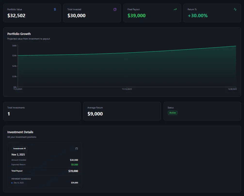 Watch your investment grow with daily balance updates showing real-time progress toward your 60% return